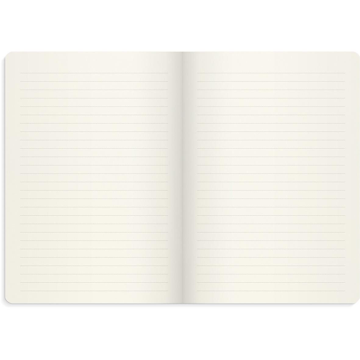 Inuti hittar du 160 linjerade sidor av cremefärgat, tjockt 100 g-papper som är både syrafritt och FSC®-certifierat, vilket ger en behaglig och hållbar skrivupplevelse. Boken är utrustad med praktiskt gummiband, märkband för att enkelt hitta tillbaka, samt en pappersficka längst bak för lösa lappar och små anteckningar.
